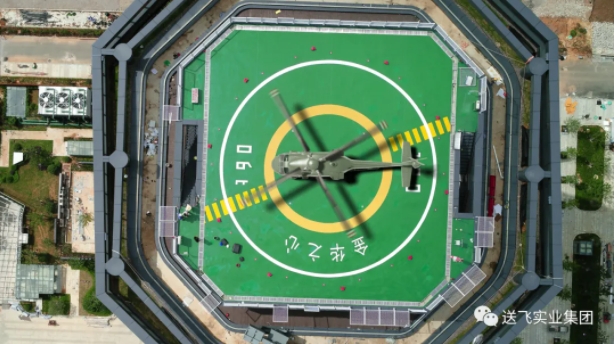 送飛實業集團承建金華信息經濟產業園直升機坪呈八邊形結構,總面積占建筑約80%,為573㎡,對比國內大多數停機坪的面積大1.5倍。